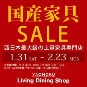 新着情報 新着情報TOPICS > トップページ > 新着情報 TOPICS YAOMOKU 国産家具SALE 2026年1/31sat.-2/23mon. READ MORE 新規導入 JW/JB アンジュール 綾野製作所のエントリーモデル READ MORE ASシリーズ パモウナ キッチンボード支持率No.1 READ MORE AW/AK エヴァンティ 大量の食器を美しく収納 READ MORE 理想の家具を上手にお買い物|分割金利・手数料が最大24回無料 READ MORE
